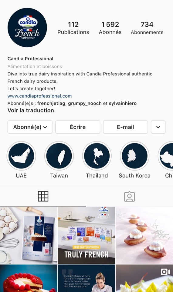 - une stratégie double : des visuels très esthétiques pour percer sur le réseau, des visuels très chartés pour développer l’attribution à Candia Professionnal.
