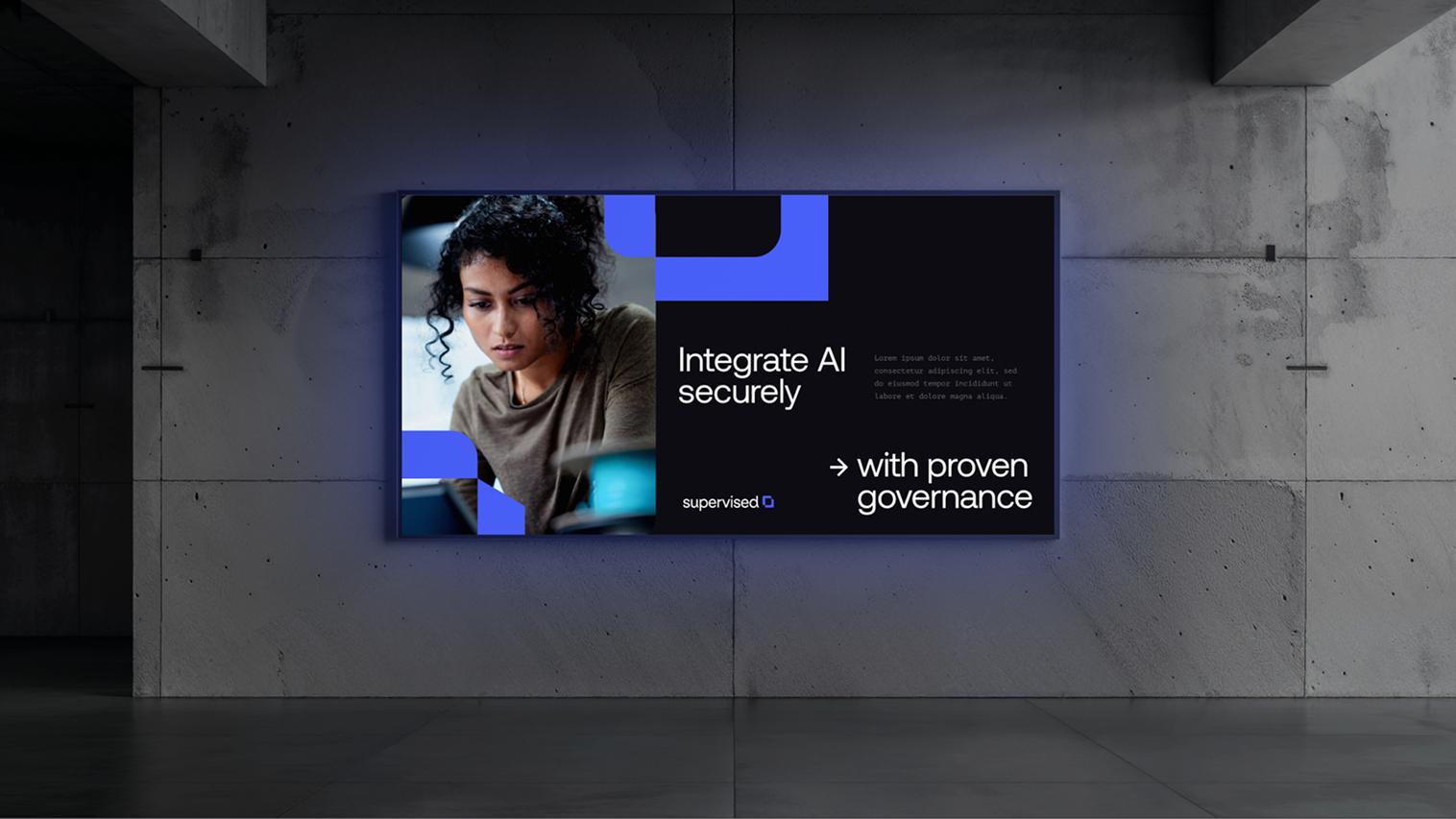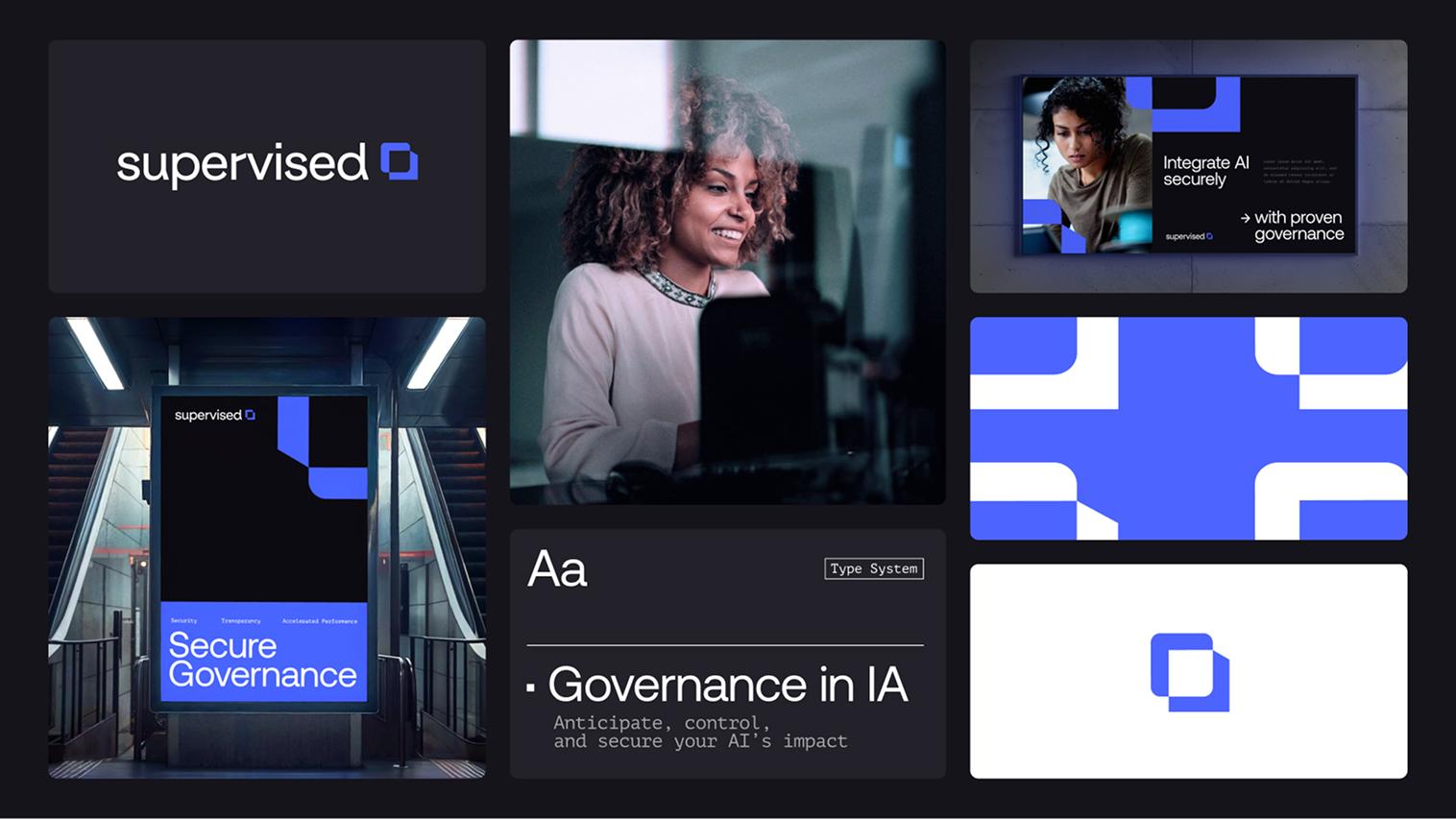 Nouvel entrant dans un domaine complexe, Supervised devait se distinguer rapidement. Il fallait concevoir une identité visuelle capable de transmettre expertise, fiabilité et modernité, tout en affirmant un positionnement clair sur la gouvernance de l’IA.
